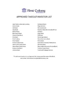 Takeout Investor List